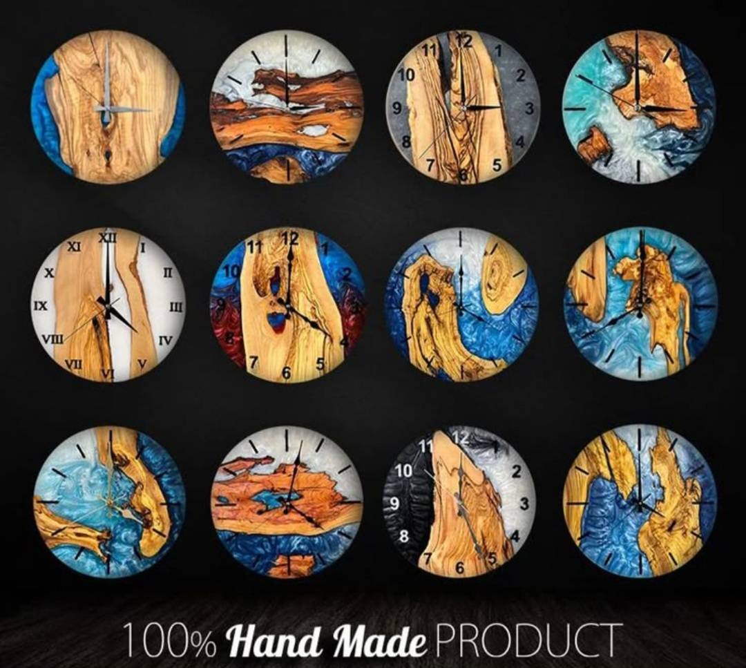 Entdecke unsere einzigartigen, handgefertigten Wanduhren aus edlem Olivenholz und hochwertigem Epoxidharz. Jedes Stück ist ein Unikat – mit Liebe zum Detail gefertigt und auf Wunsch auch personalisierbar.